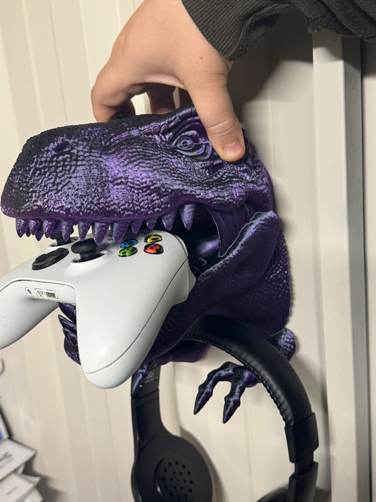 WALL MOUNT DINOSAUR HEAD HOLD HEADPHONES AND XBOX/PLAYSTATION REMOTE